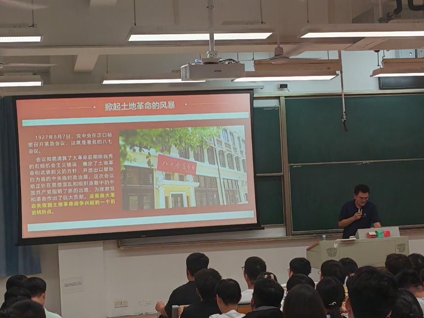 随后,课程聚焦“投身到大革命的洪流中”“掀起土地革命的风暴”等关键历史阶段,以“八七会议”等重大事件为例,生动再现了党在革命时期的探索与抉择。通过时间轴梳理、历史场景还原,学员们对“没有共产党就没有新中国”的真理有了更直观的认知。