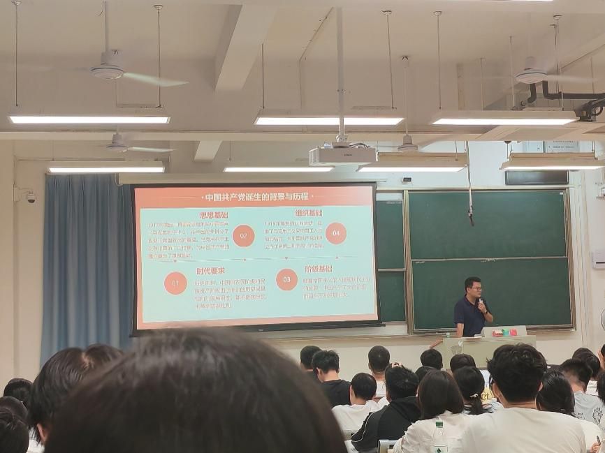 党校教师石其坤以《沐红色洗礼 催砥砺奋进——中国共产党的光辉历程和中国特色社会主义》为题,围绕“开天辟地:中国共产党的诞生”“没有共产党就没有新中国”“新中国成立后的艰难探索之路”“从改革开放到走进新时代”四大板块展开深入讲解。从思想、组织、阶级、时代等方面阐述了中国共产党诞生的背景与历程并强调“中国共产党的诞生,本质上是近代中国历史发展的必然结果,是马克思主义与中国工人运动相结合的产物,它说明只有无产阶级政党才能真正领导中国人民走出半殖民地半封建社会的困境。”
