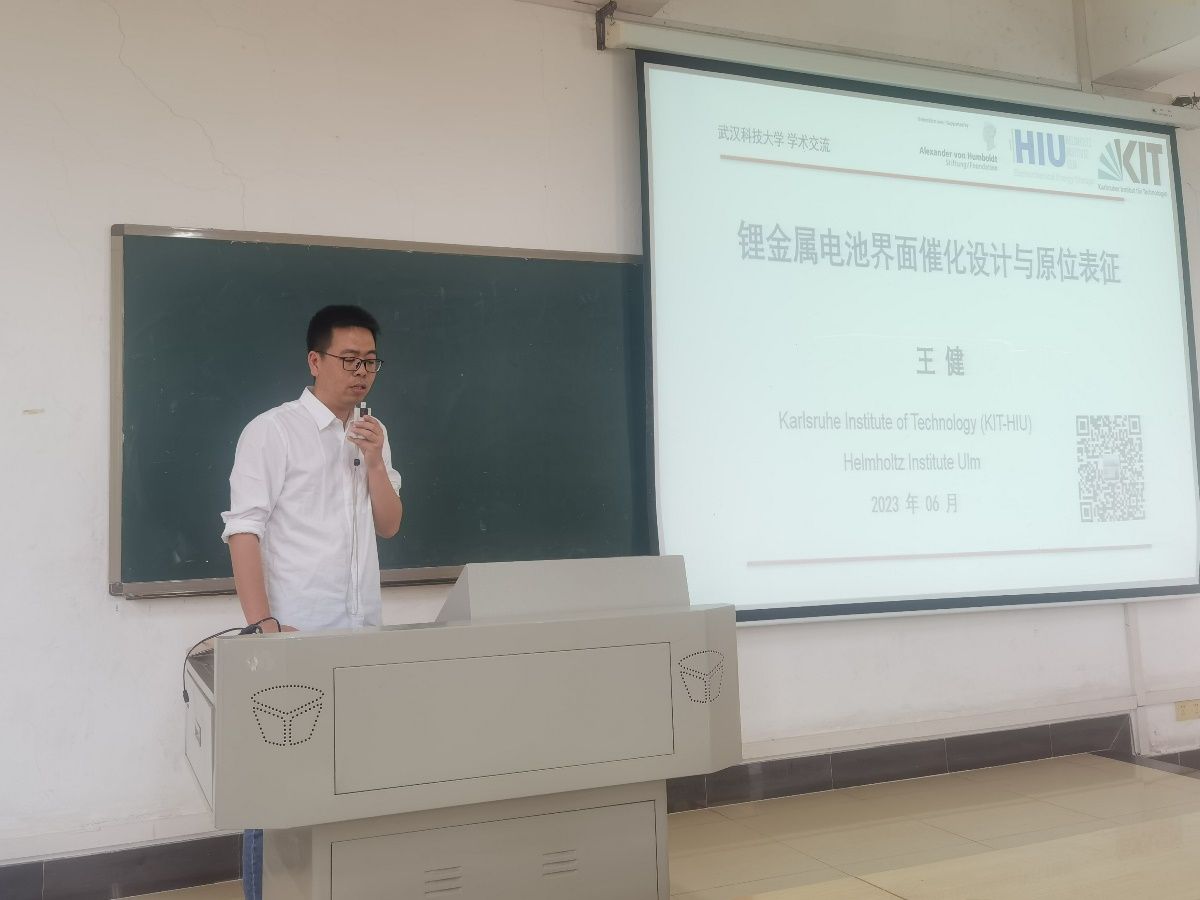 (通讯员朱思聪)6月12日上午, “洪堡学者”获得者、德国Karlsruhe Institute of Technology、Helmholtz Institute Ulm电化学研究所研究员王健博士应邀为太阳集团2007网站作学术报告,报告题目为“高比能锂金属电池的催化设计与原位机制表征”,报告会由应用物理系光电信息科学与工程专业教研室主任朱思聪主持。太阳集团2007网站院长丁义明,太阳集团2007网站副院长王玉华,创新创业学院副院长汪汝武等几十位师生参加了此次报告会。