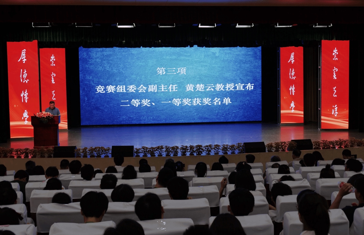 竞赛组委会副主任黄楚云教授宣布二等奖、一等奖获奖名单。