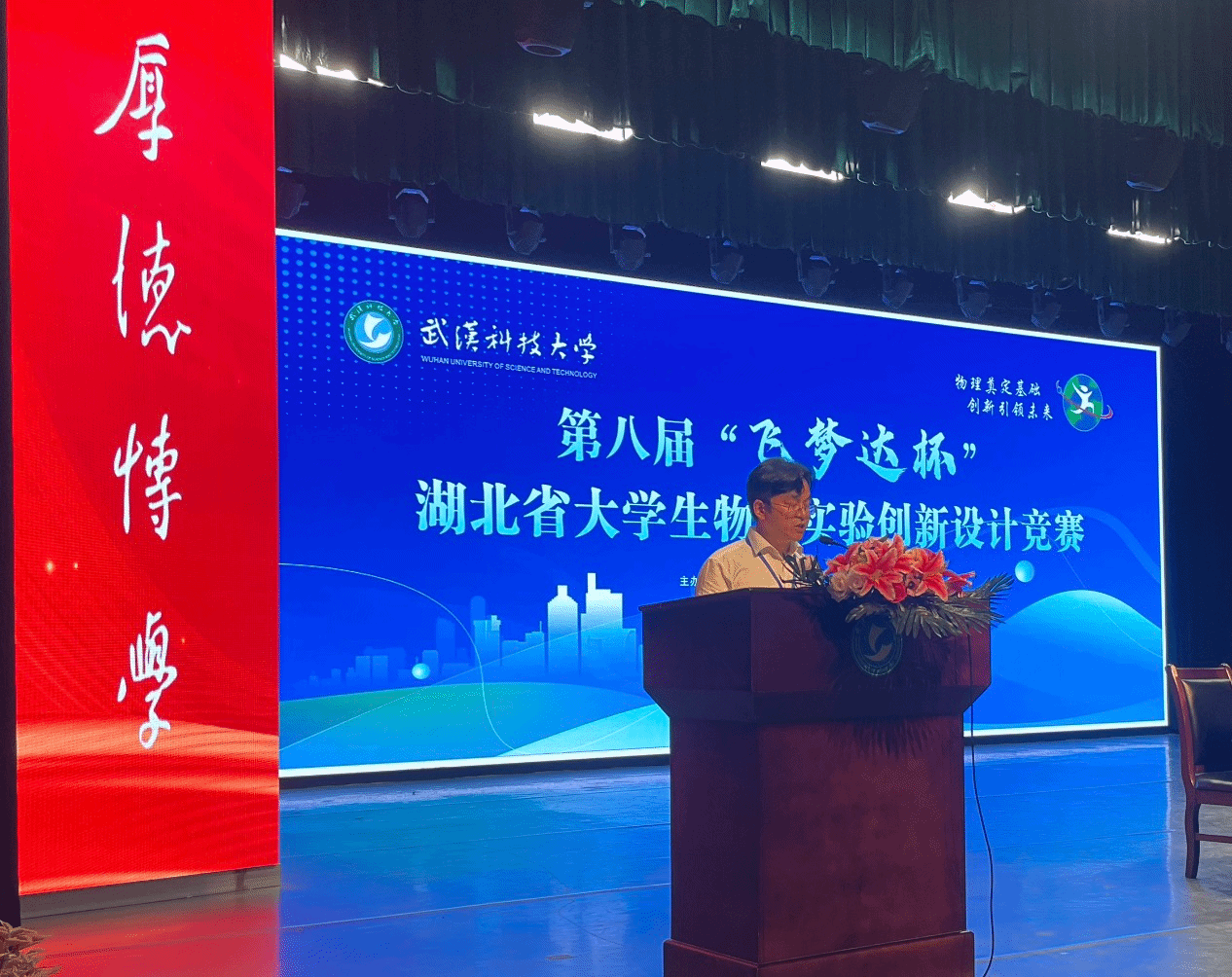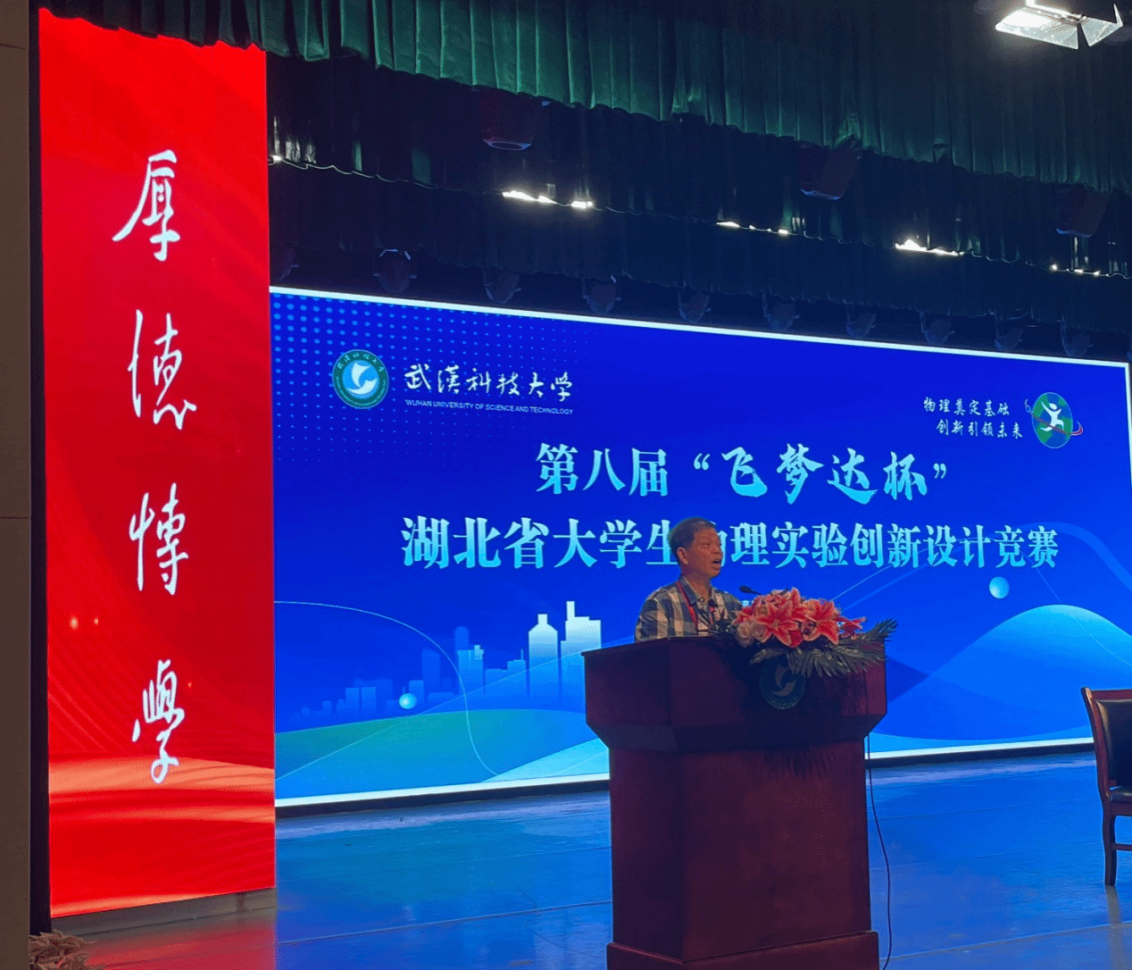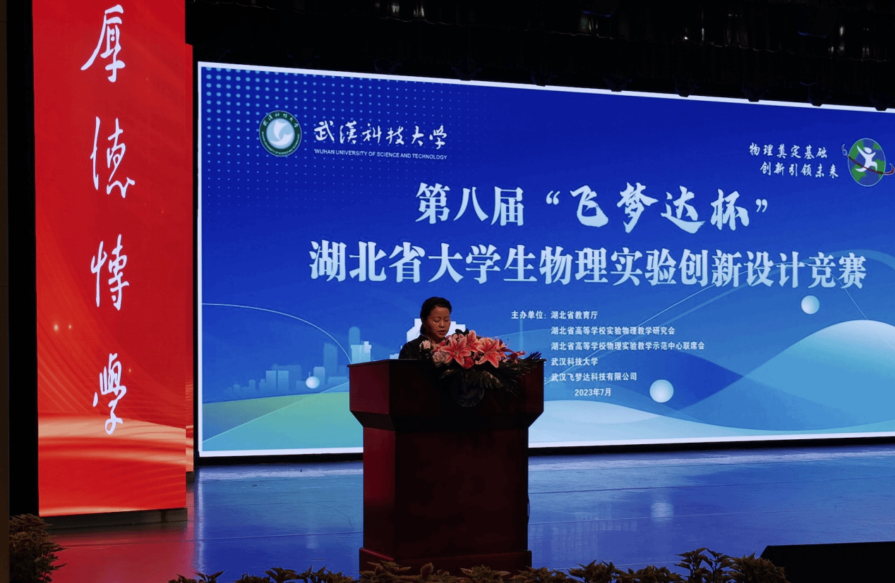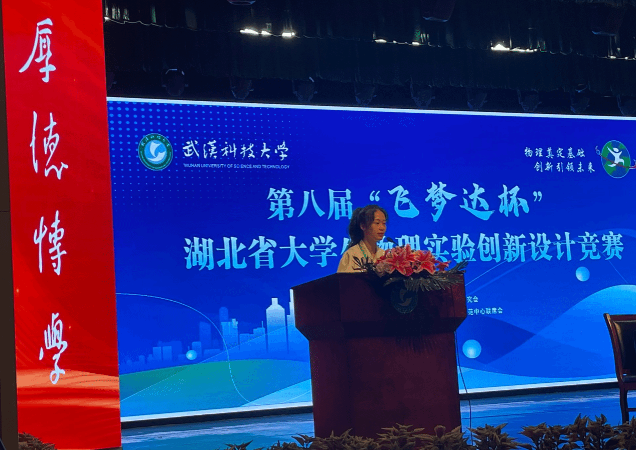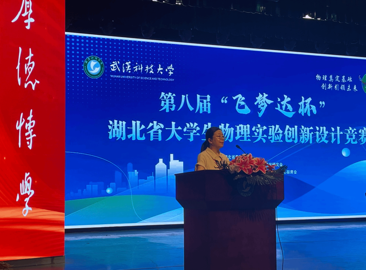 竞赛组委会主任熊永红教授宣布第八届“飞梦达杯”湖北省大学生物理实验创新设计竞赛开幕。