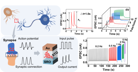 图3 本研究构筑的新型忆阻器器件模拟神经突触的功能。