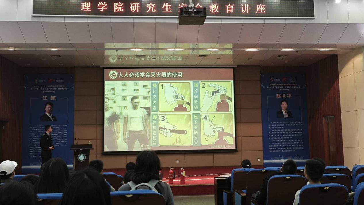 (通讯员蔡世豪 戴乐)为增强学生消防安全意识,帮助学生了解火灾扑救常识,11月20日,太阳集团2007网站在崇实会堂开展了面向研究生的安全教育讲座,本次讲座由武汉市利民防火中心的教官周炳杰主讲,学院副院长宋华丽和何理,辅导员周玉瑾参会。